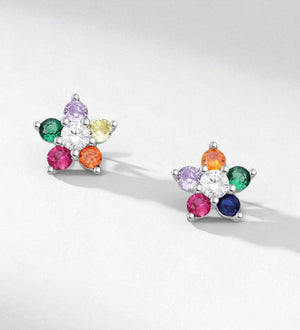 Cercei din argint 925, cu inchidere Push-Back, decorati cu pietre colorate, model Floare, 1.4g