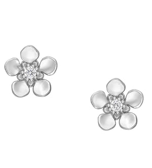 Cercei din argint 925, cu închidere push-back și zirconiu cubic, model Flori, 0.6g