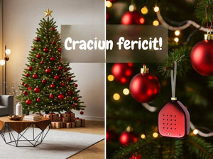 Plonjează într-o atmosferă festivă cu aceste decoraţiuni acustice de Crăciun . De un verde sclipitor şi o experienţă unică de sunet.  De fiecare dată când treci pe lângă ele, senzorul de mişcare înregistrează prezenţa şi porneşte unul dintre cele 15–20 de jingle-uri  de Craciun de 3–7 secunde, cu o pauză automată de 10 secunde între activări, pentru a păstra farmecul intact.